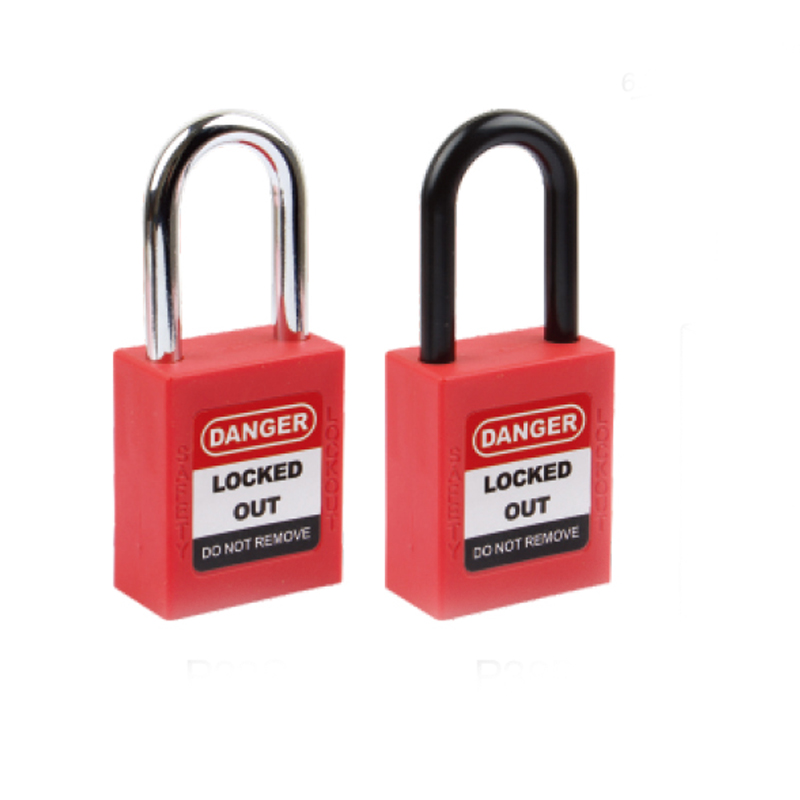 The steel shackle is chrome plated; the non-conductive shackle is